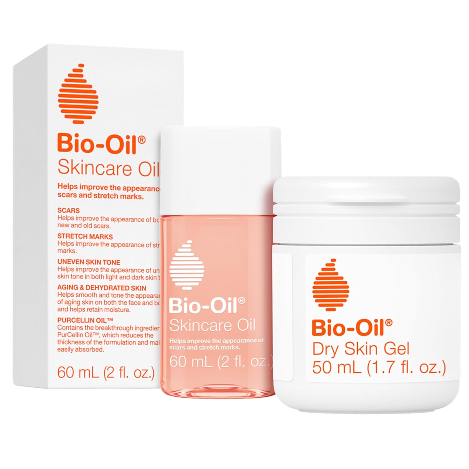 Get the most from your skincare routine with Bio-OilÕs ultimate skincare bundle.ÊOur dermatologist recommended Skincare Oil can be used to help reduce the appearance of stretch marks, scars, and other marks due to surgery, injury, acne, aging, pregnancy and more while our Dry Skin Gel helps to nourish & restore dry skin, locking in the moisture that your skin needs.ÊWe want you to feel like you really can have it all with the Bio-Oil ultimate skincare bundle. All Bio-Oil products are cruelty free, paraben free and 100% recyclable. Bio-Oil is made for all skin types, textures, and tones. Bio-Oil products are non-comedogenic and safe to use on both face and body. Our products help your skin to retain essential moisture to soften skin and provide dry skin relief.ÊÊBio-Oil body oil has a wide variety of uses and can be used as a facial moisturizer, lip moisturizer and hair moisturizer. It's truly a multi use oil that's recommended by skin care specialists. Use Bio-Oil skincare oil as a beard oil, cuticle oil, hair oil, scalp oil, face oil, lip oil, and nail oil. The toxicological profile, chemical structure, level of inclusion and total level of daily exposure of each ingredient used has been assessed and deemed safe for daily use, including for use by pregnant women. In clinical trial, 82% agreed that with Bio-Oil Dry Skin Gel Ôthey saw a difference in just two daysÕ.