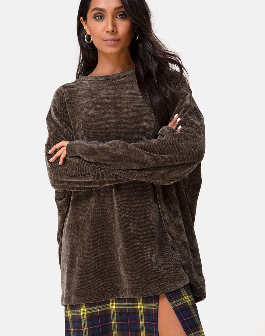 Refresh your seasonal style with the knit to know! The Dad jumper will be a winner this coming season, in a khaki knit it features a crew neckline and loose oversize fit. Opt for an edgy finish with jeans and some classic docs.