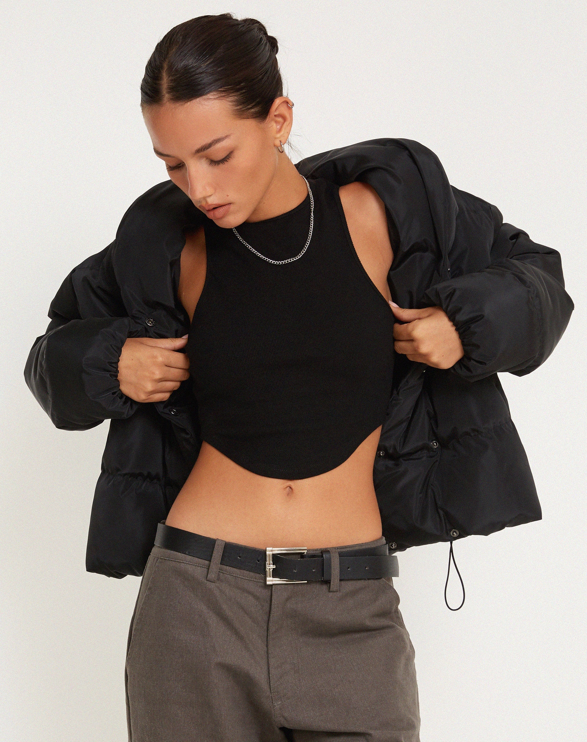 Sleeveless vest top with crew neckline in black. Style with our Shan Wide Leg Trousers for a model off duty look.