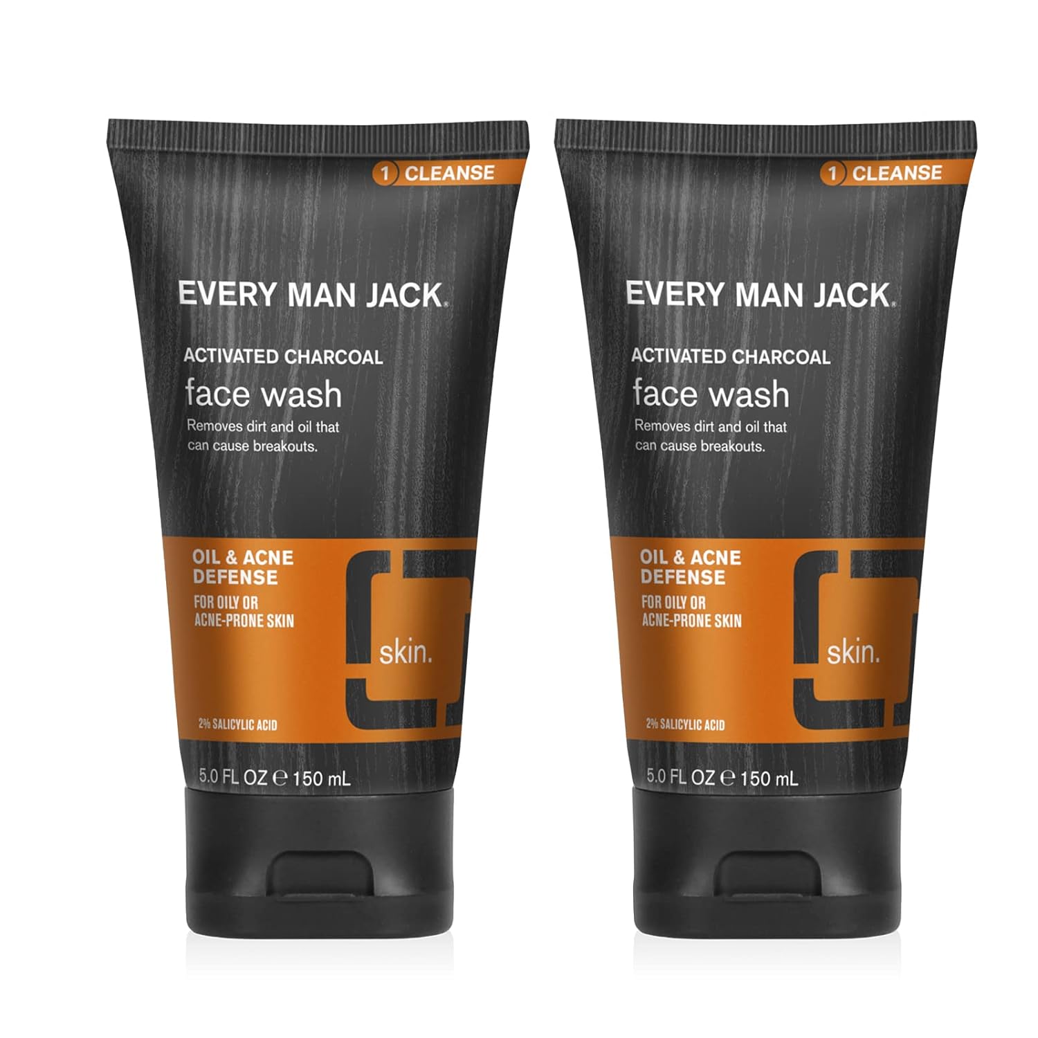 Every Man Jack Activated Charcoal Oil and Acne Defense Skin Clearing Face Wash For Men - Deeply Cleanse Pores and Prevent Acne Breakouts with Salicylic Acid + Coconut Oil - 5 oz Mens Face Wash - 2pack