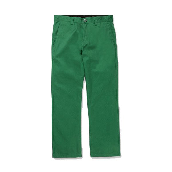 Volcom Frickin Skate Chino Pant Introducing the Frickin Skate Chino, the ultra-durable Stone Made cousin of the Frickin Modern Stretch Chino. With the Frickin Skate Chino we've doubled the weight of the pant's cotton twill fabric that's thicker and more durable, opened up the fit to be a little roomier and increased the leg opening to 18. We also we snuck a Stone hit inside the cuff that appears when you roll up them up, which is definitely going pop off the page when captured with a fisheye lens. Of course, you can expect the same reliable fit and feel as our regular chinos and signature details such as Volcom s asymmetric back yoke, metal buckle button, back welt pockets and a stone embroidery on the left leg. DETAILS: Relaxed fit 18 leg opening 60 Cotton 40 Polyester twill Two tone inner side seam topstitch finishing and inner Volcom Stone print at the inner left leg side seam. Asymmetrical back yoke detail with single welt pockets Pre-Laundered