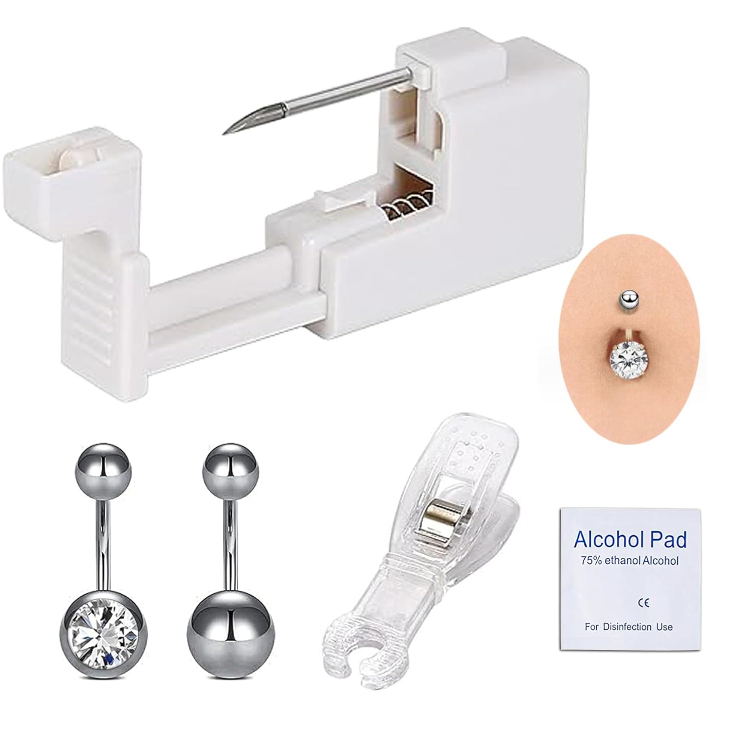 Lovamis 5PCS Professional Body Piercing Kit for Belly Button/Lip/Tongue/Ear/Nose/Navel, Safe Piercing Gun Kits, Body Piercing Needle Tool Kits Stainless Steel for Women Men(belly button piercing kit)