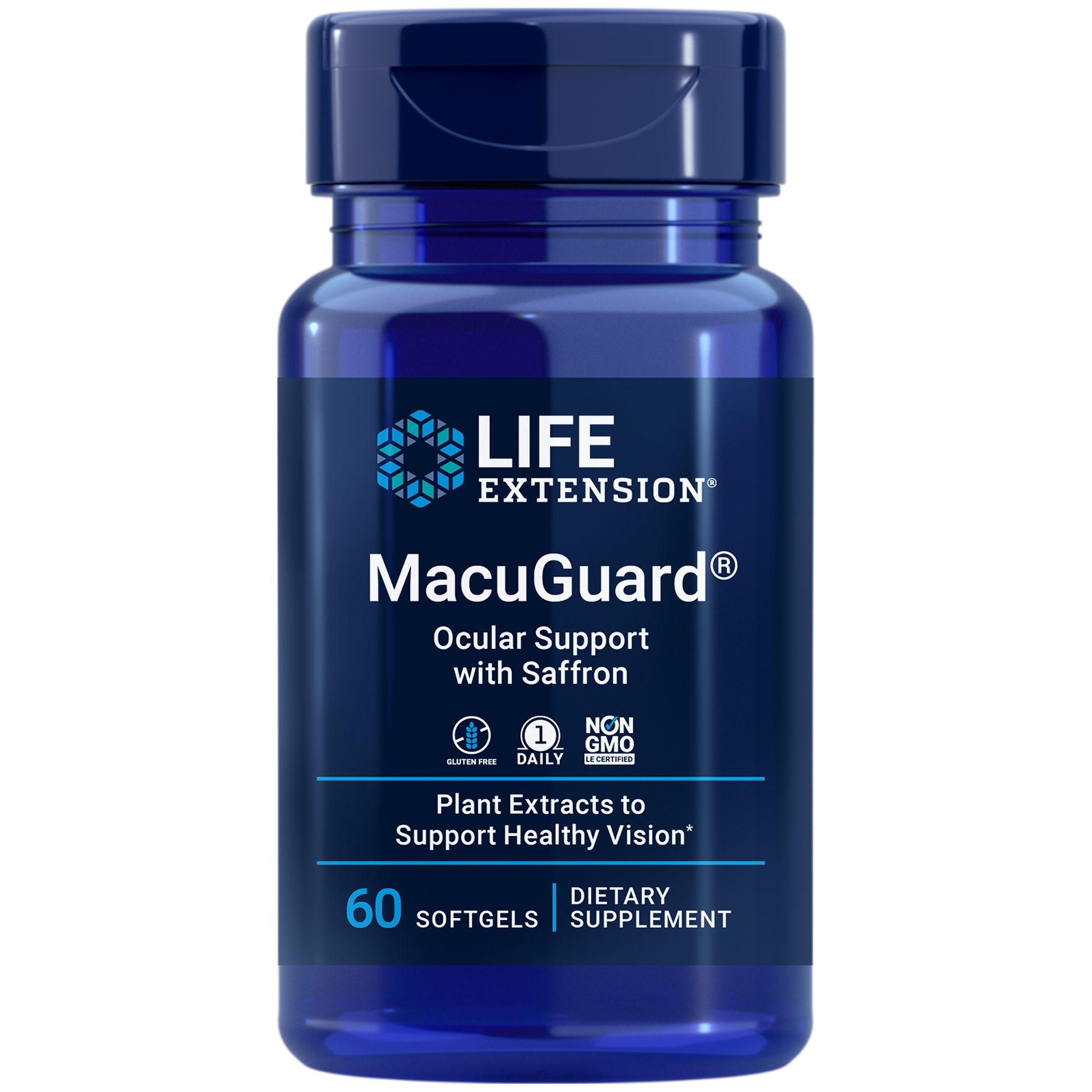 Nutrients like lutein and saffron support eye health. Life Extension's Best Seller MacuGuard® formula delivers powerful carotenoids and flavonoids for maintaining eye health, plus C3G from black currant and saffron.