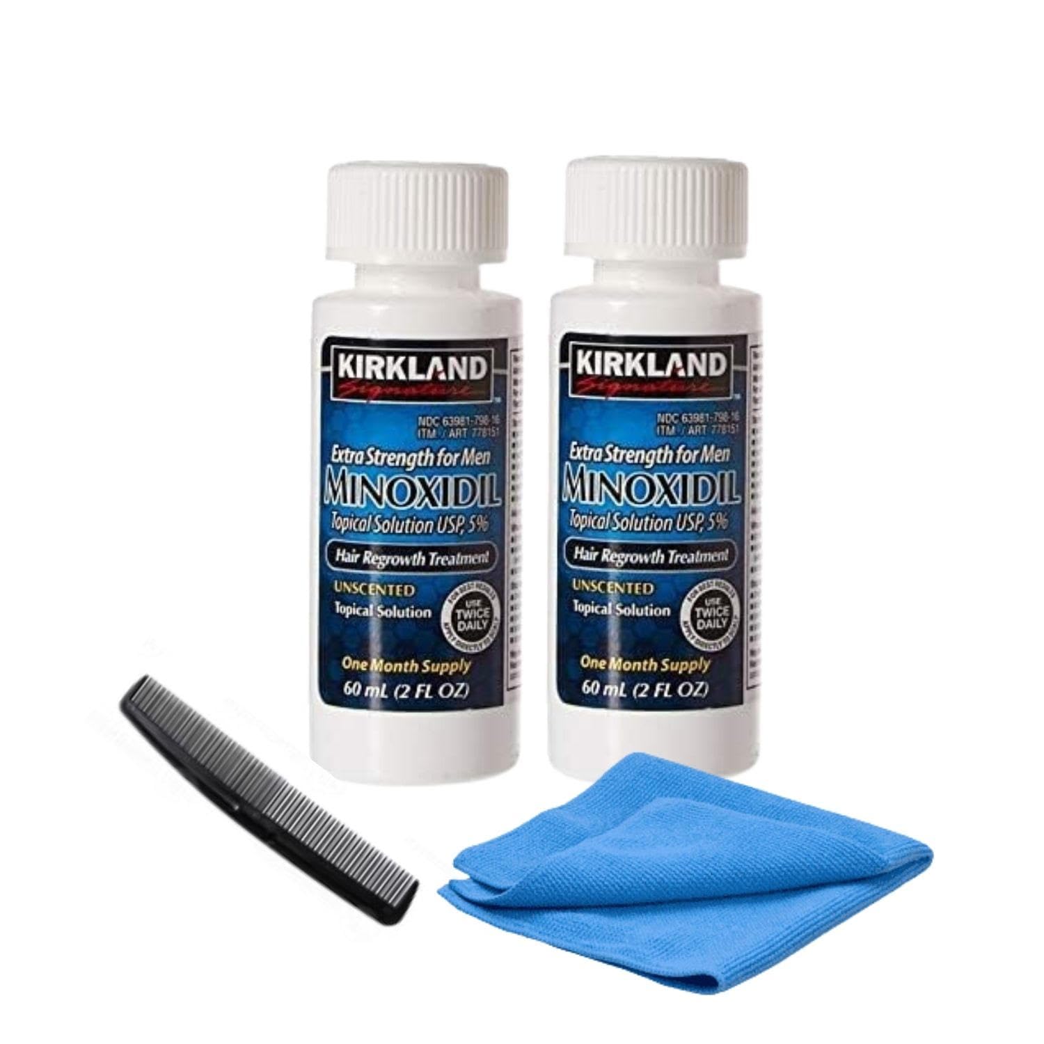 Minoxidil Liquid Extra Strength Hair Regrowth Treatment for Men, 5% Topical Solution, 2 Months Supply - Comb and Microfiber Cloth Included - Dermatologist Recommended by 4K Logistics