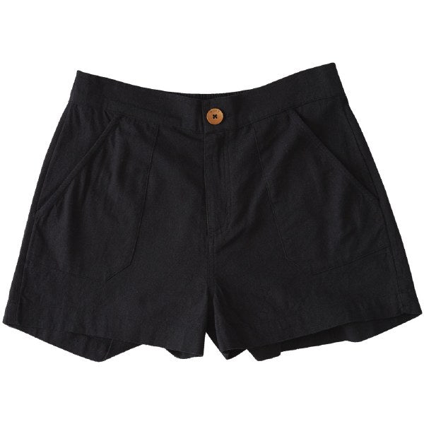 Roxy Oceanside High Waisted Short Features Type: Beachy short Fabric: 100 cotton yarn dyed (120g m2) Fit: high-waisted, easy fit Fly Waist: Button front with zip fly and elasticated waistband at back heart embroidery on backside right pocket Fabric Content 85 Cotton, 15 Linen
