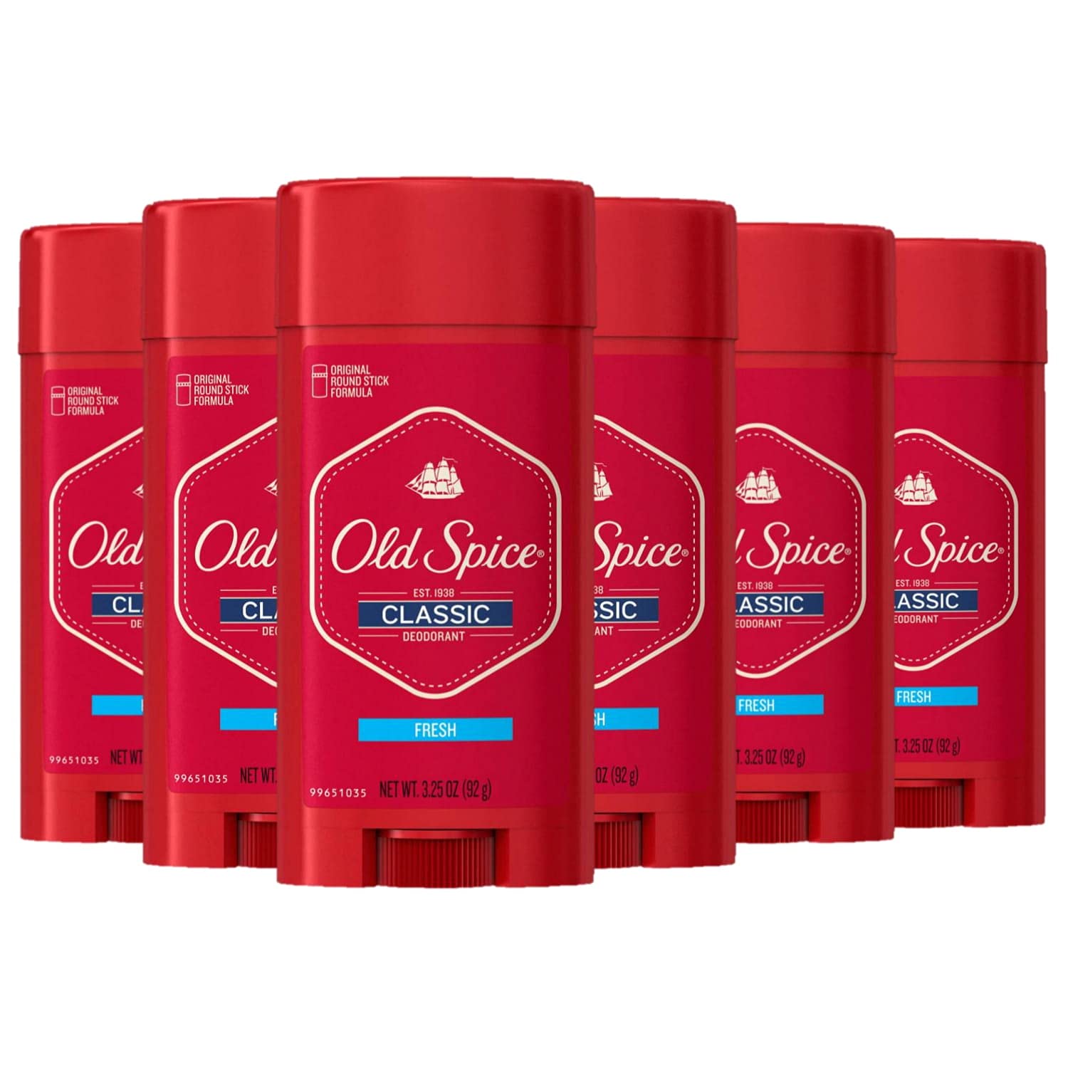 Old Spice Aluminum Free Deodorant for Men Classic Fresh Stick, 3.25 Oz (Pack of 6)