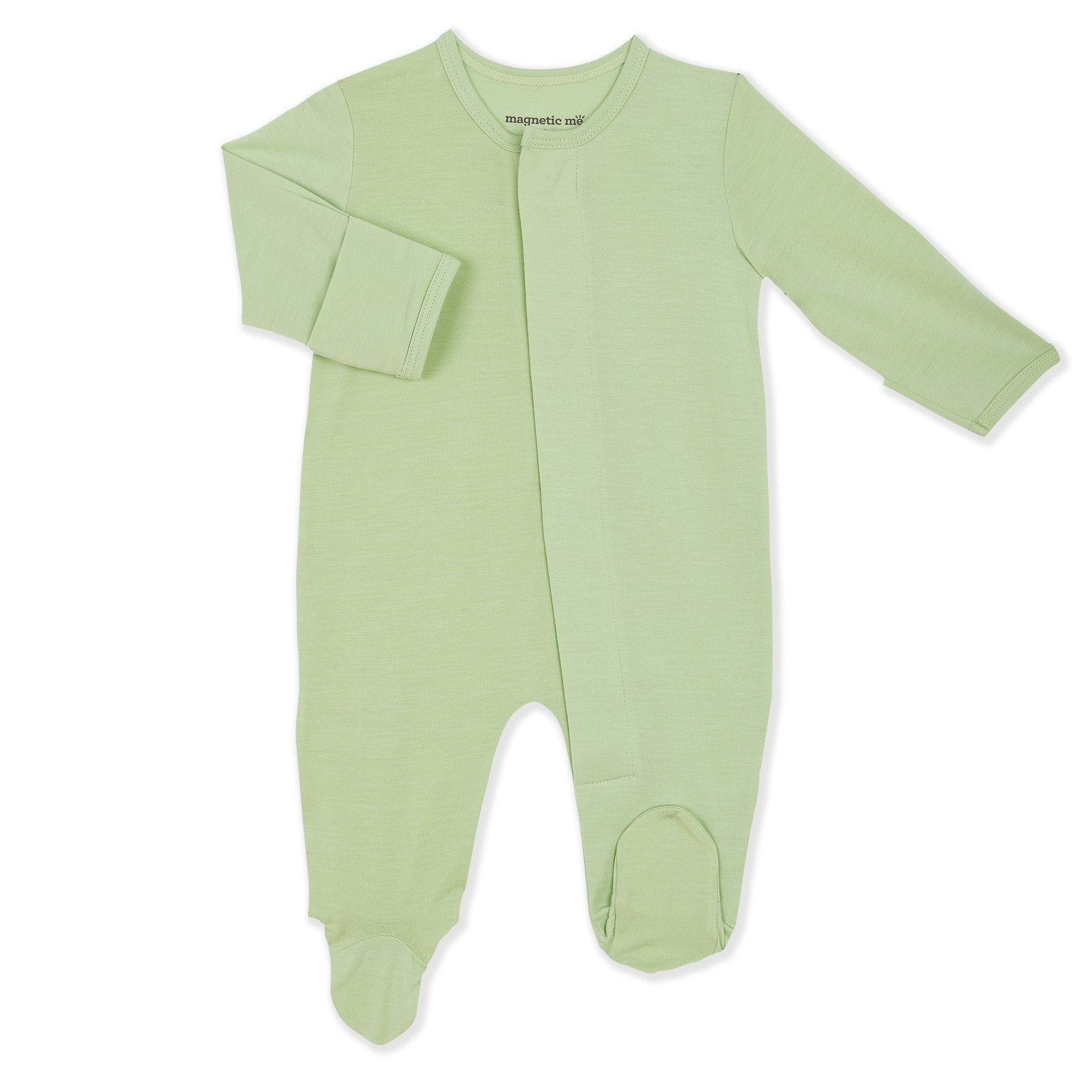 A soft, stylish all-day and all-night wardrobe staple with smart magnetic fasteners that makes changing time painless. With our no over-the-head design, simply open the outfit, insert baby, and BOOM, DONE! - the footie practically closes itself. Machine wash as directed.