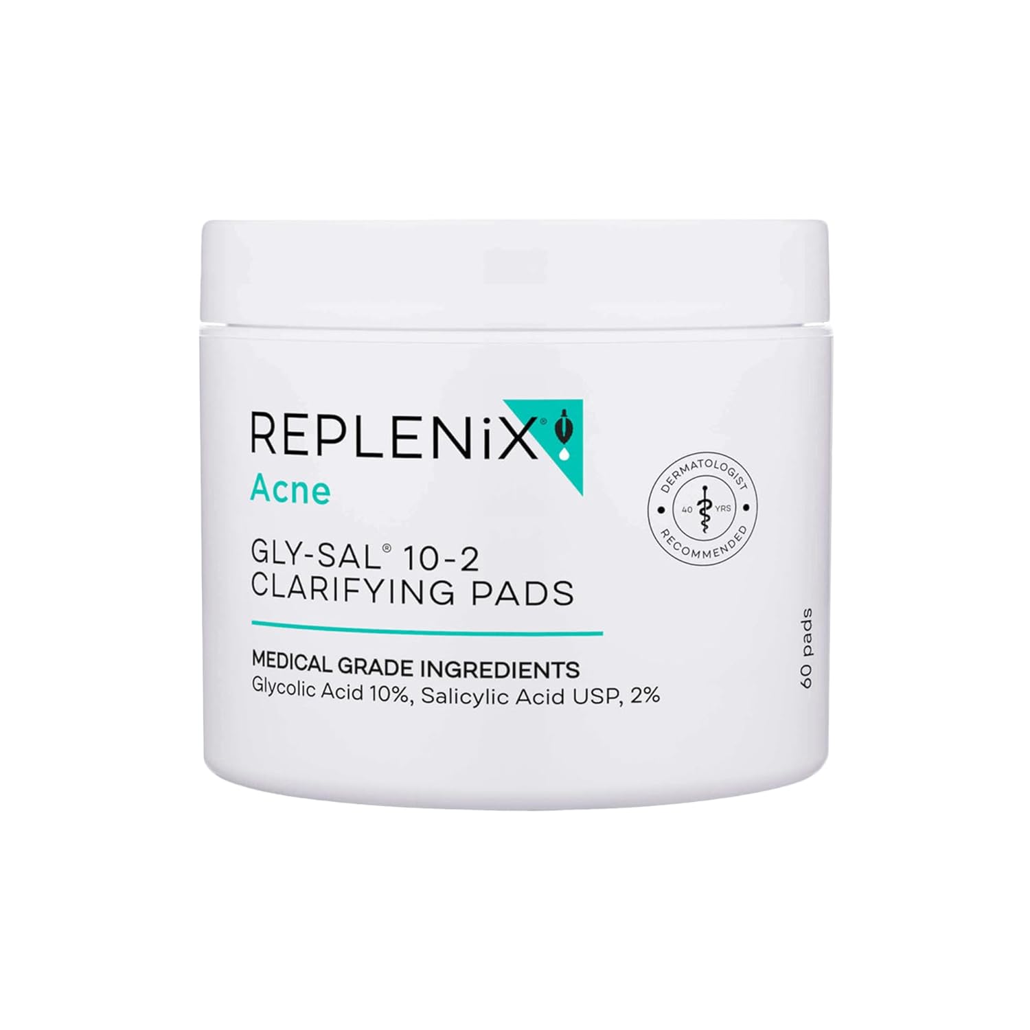 Replenix Gly-Sal Clarifying Pads, Medical-Grade Exfoliating Cleansing Wipes for Acne-Prone Skin, Oil-Free Facial Treatment with Witch Hazel, Contains Glycolic & Salicylic Acids (60 ct.)