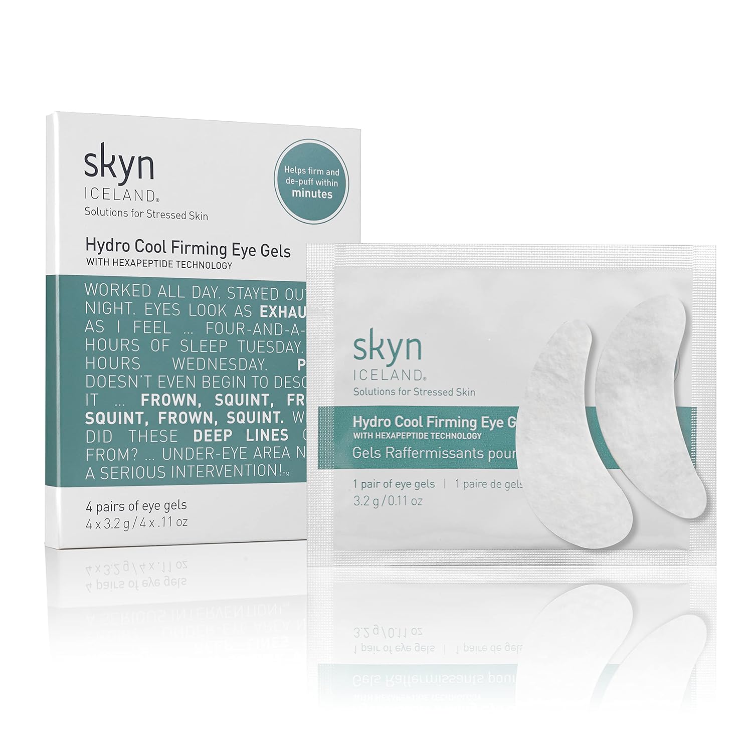Hydro cool firming eye gels work intensively to help firm, de-puff and reduce the premature wrinkling that accompanies a high-adrenaline lifestyle. In just 10 minutes, this cooling transdermal gel patch infuses the eye area with concentrated doses of soothing ingredients. Elastin helps to firm and tone, hexapeptide helps to reduce the appearance of fine lines and wrinkles, ginkgo biloba improves blood flow and helps reduce puffiness and advanced antioxidants help prevent future damage. The patch, a cutting-edge delivery system, is easy to both apply and remove and is non-irritating.